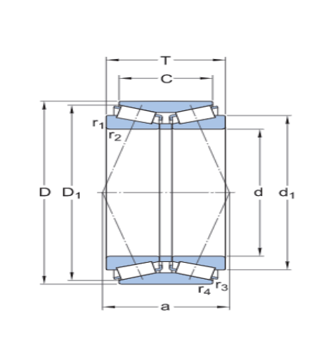 Double row tapered roller bearing is a type of bearing with a double raceway outer ring and two single raceway inner rings, with a spacer ring between the two single raceway inner rings, codenamed 350000; Another type is two single raceways and one double raceway inner race, with a spacer between the two single raceway outer races, codenamed 370000. Both types can adjust the clearance of the bearing by changing the thickness of the spacer. This type of bearing can withstand both radial and bidirectional axial loads, and can limit the bidirectional displacement of the shaft or shell within the axial clearance range of the bearing.